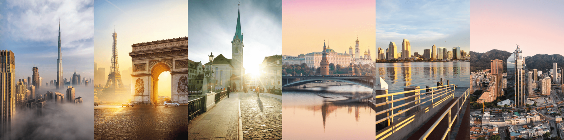 Dubai + Paris + Zürich + Moskau + San Diego + Bogotá